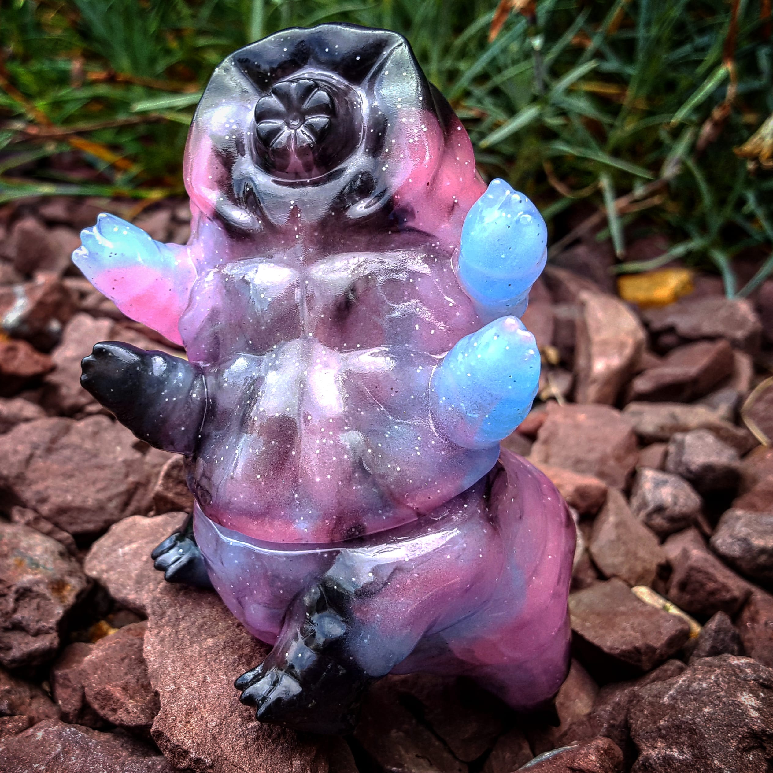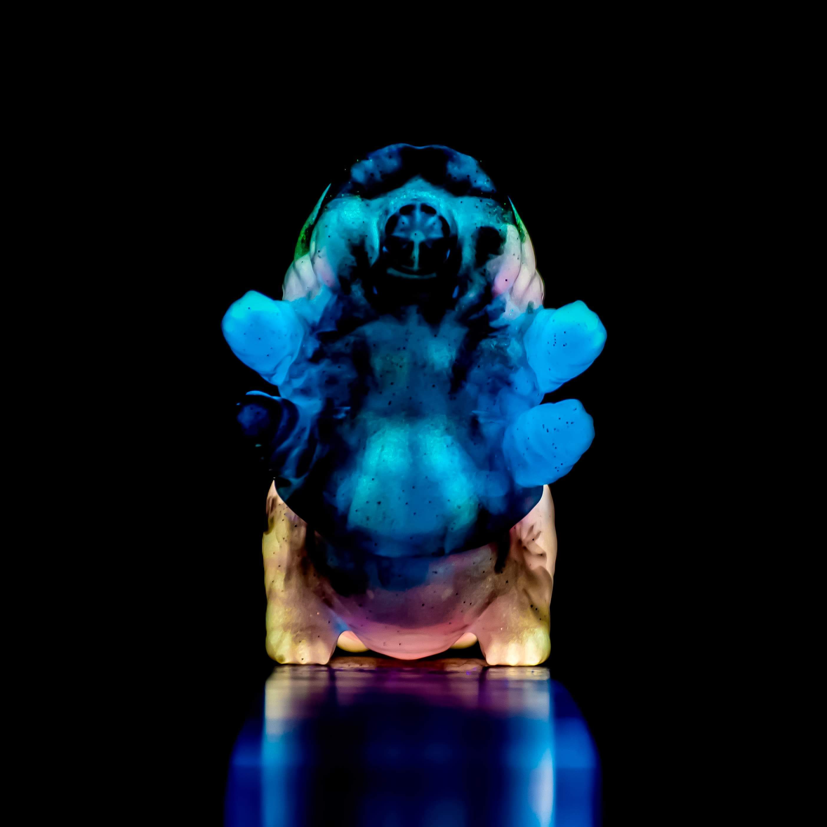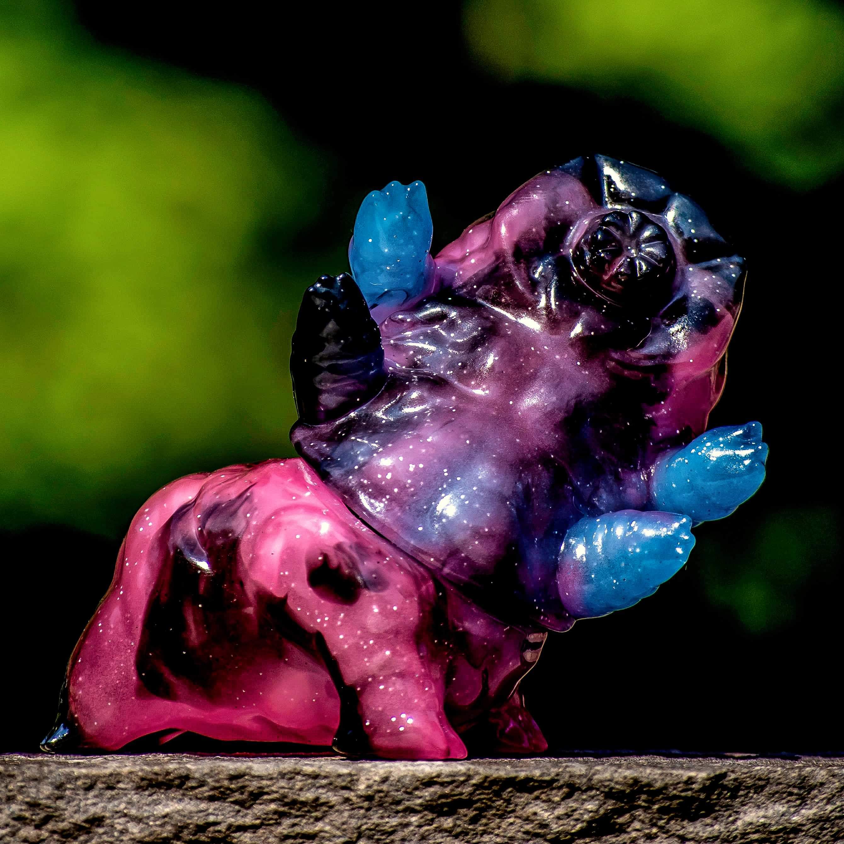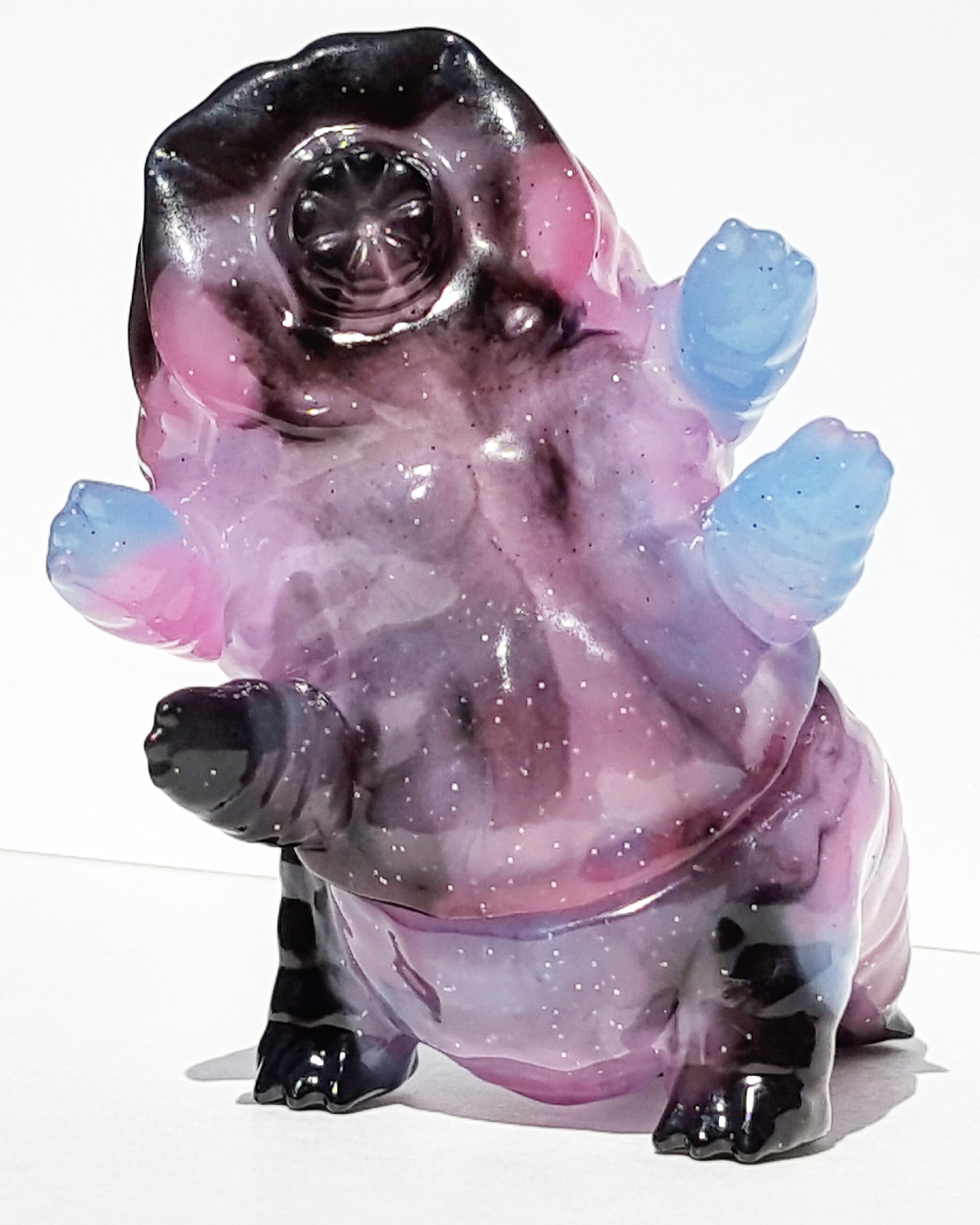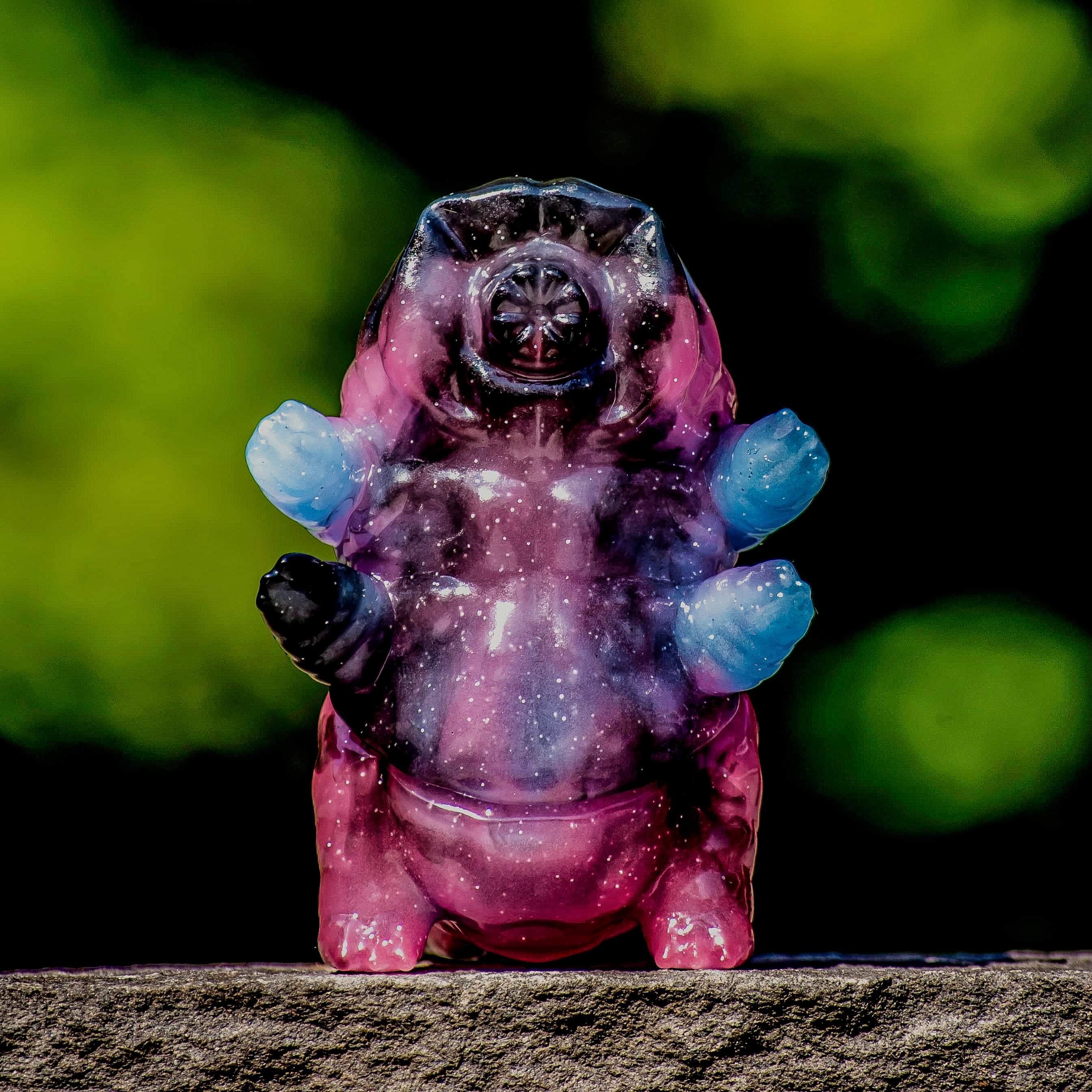 The Mini Figure Militia team-up with DoomCo Designs to offer an exclusive deluxe edition Tarbus The Tardigrade in "Astroprimordial" dual glow in the dark nebula translucent black, pink, and blue with silver flake!